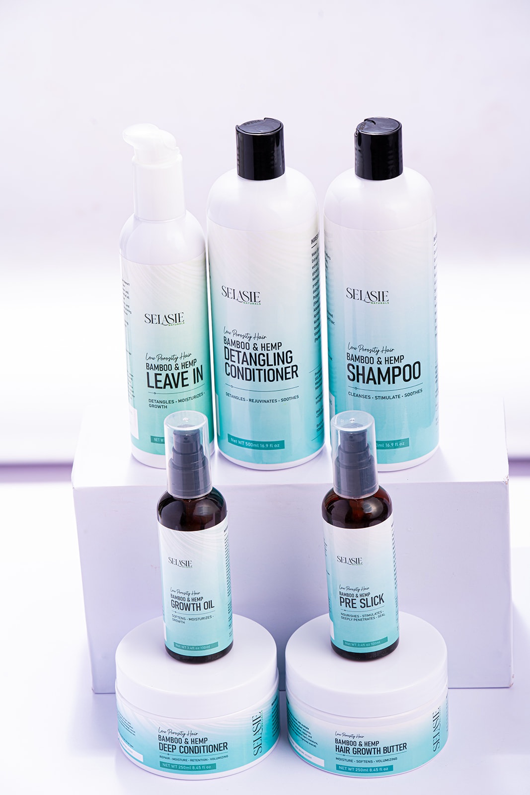 The Bamboo & Hemp Butter (Classic) Bundle is specially designed for low porosity hair that struggles to absorb and retain moisture.