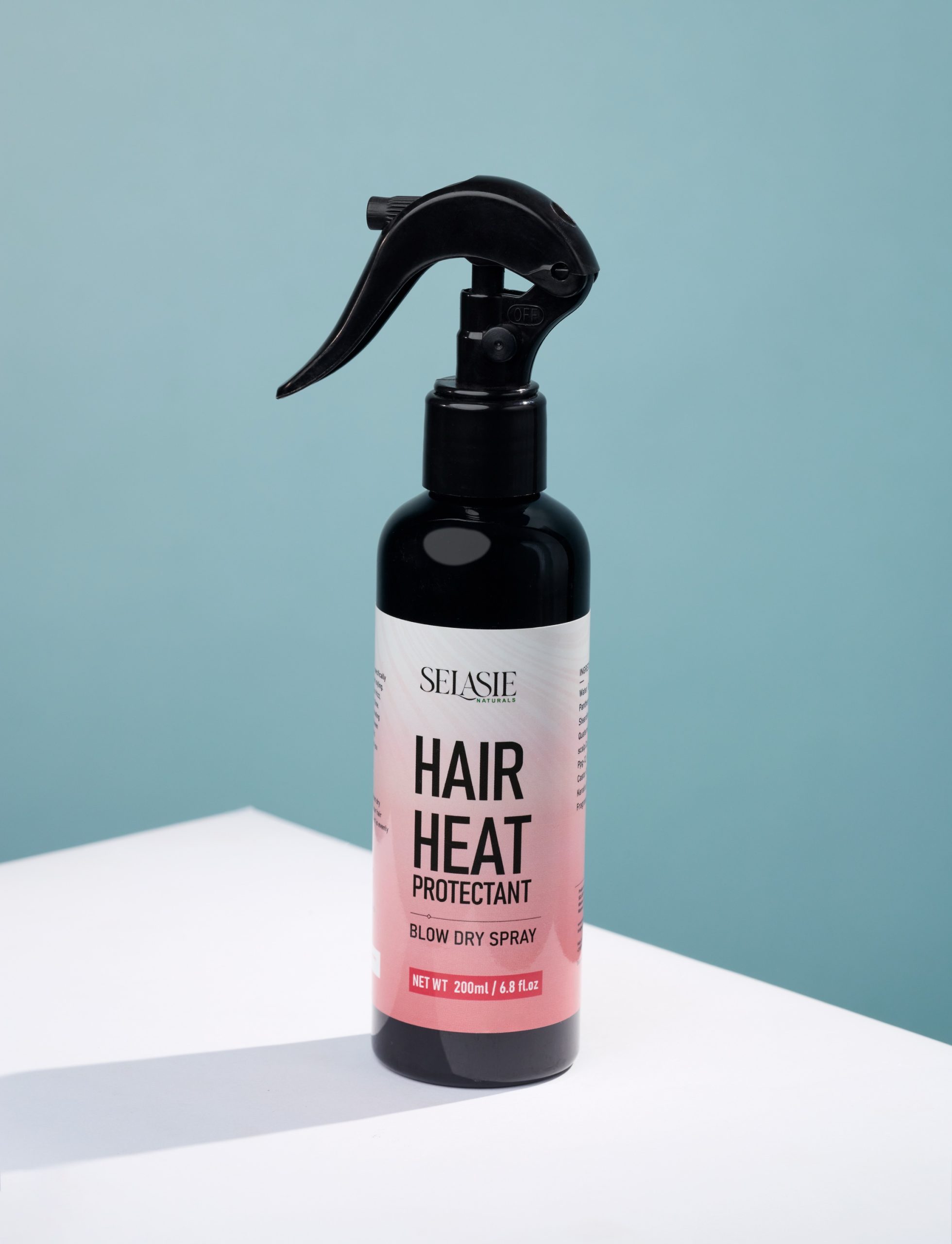 Heat styling tools like blow dryers, flat irons, and curling tools can weaken hair strands and lead to dryness, breakage, and split ends. The Selasie Naturals Hair Heat Protectant Spray helps create a protective barrier that shields your hair from heat damage while keeping it soft, smooth, and manageable.